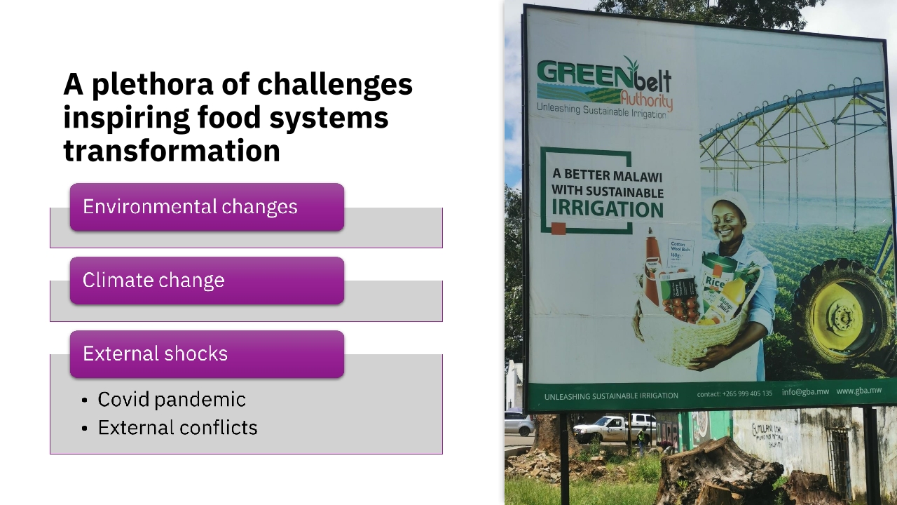 Across southern Africa, a combination of environmental, climatic, and other external shocks to supply chains (including those resulting from the COVID-19 pandemic), are creating new challenges for food systems. In this context, strategic transformation of food systems will be central to national and regional strategies for improving human, animal, plant, and overall environmental health.